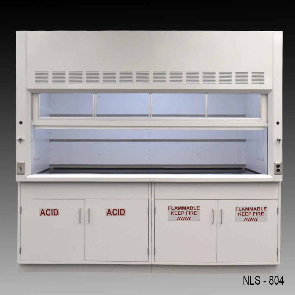 Upgrade your lab with the 8-foot Fisher American fume hood, designed for maximum safety and efficiency. This fume hood features acid and flammable storage cabinets, a convenient on/off switch, AC power, and water and gas valves for versatile use. The robust construction and reliable performance ensure a safe working environment, making it ideal for various laboratory applications.